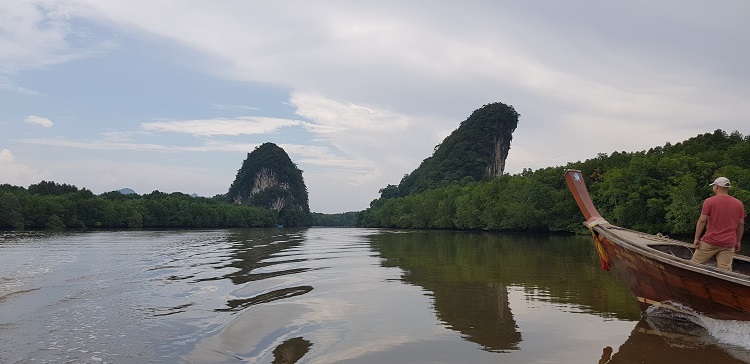 Un bateau traditionnel Thaï nous conduira ensuite à travers les mangroves pour y découvrir la richesse de la faune, de la flore et des grottes chargées d'histoire.